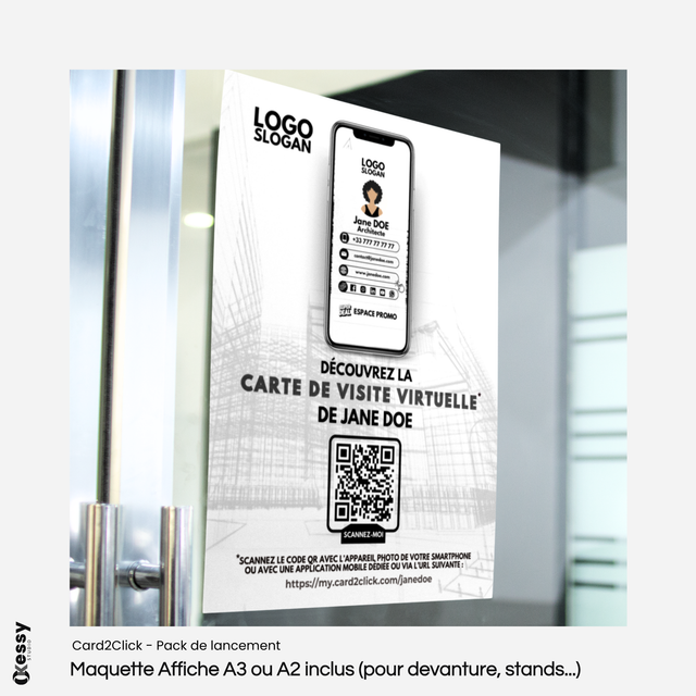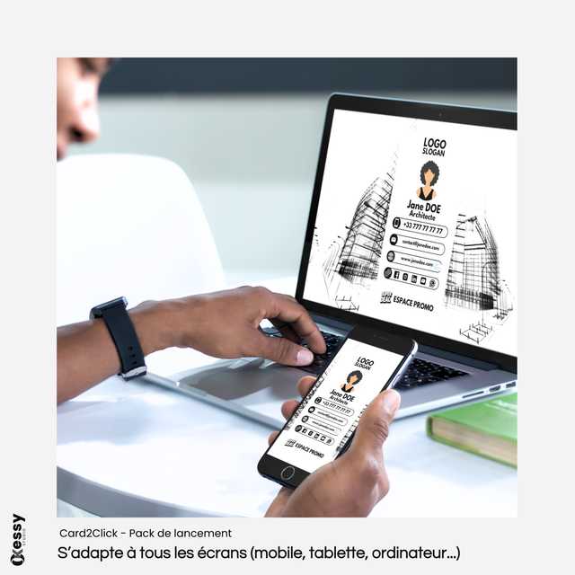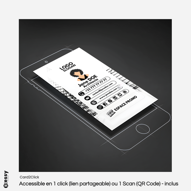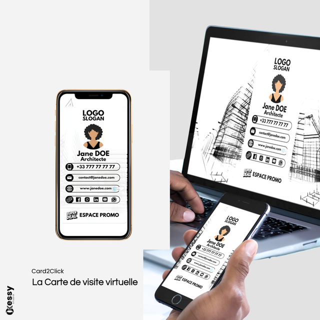 Votre carte de visite virtuelle entièrement personnalisée, accessible en 1 clic ou 1 scan (QR Code), compatible mobile, tablette et ordinateur.